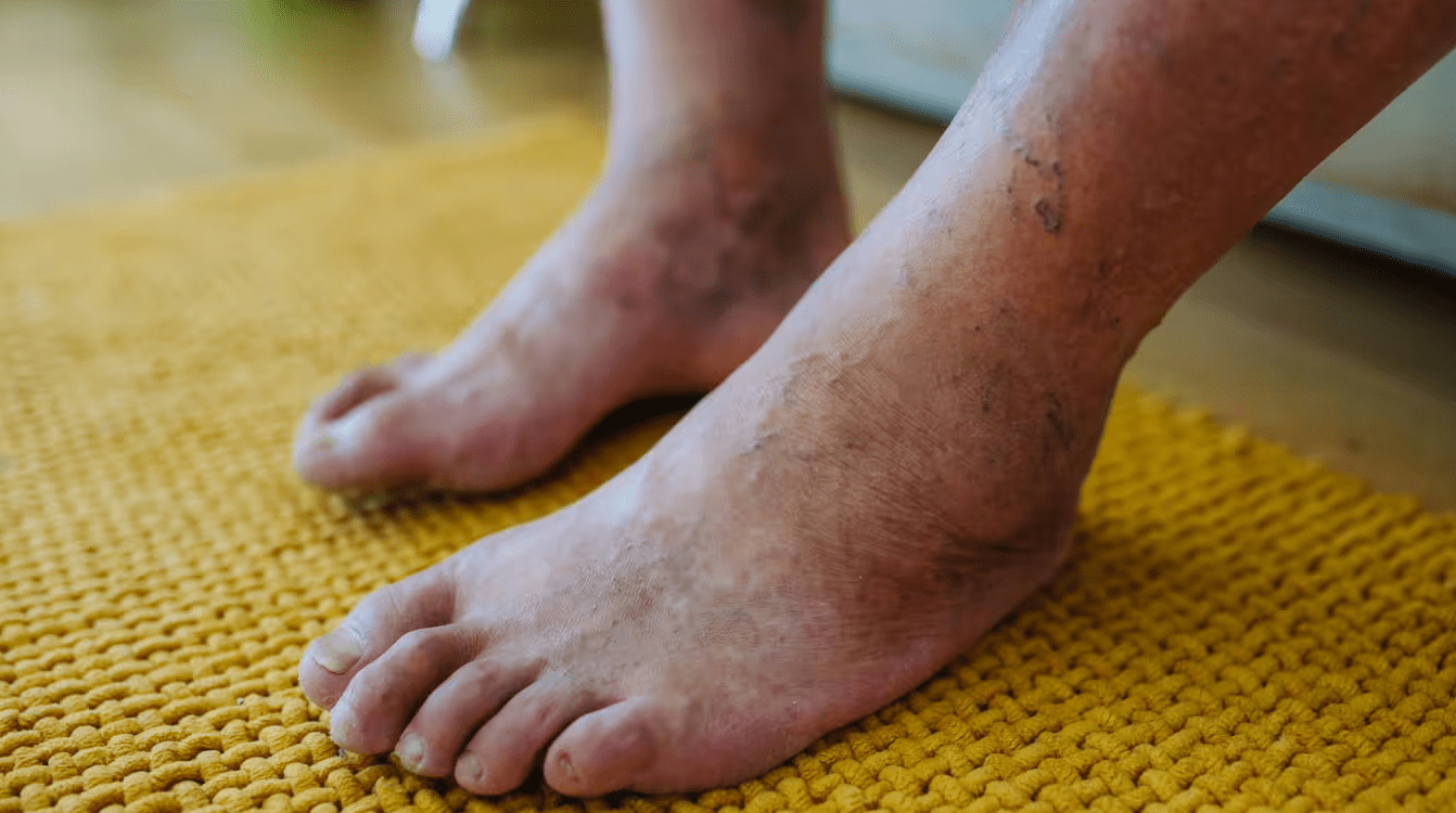 2. Poor circulation (peripheral arterial disease / microvascular damage) — Diabetes damages small blood vessels, reducing blood flow and slowing healing. Poor circulation can make the heels more vulnerable to pain with activity, and slows recovery from minor injuries.